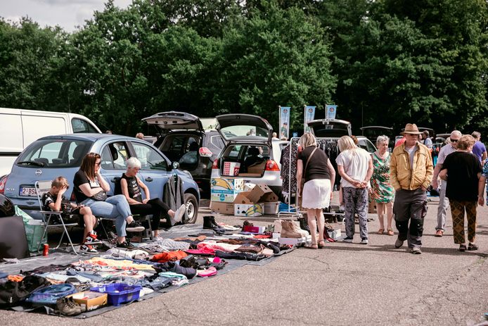 Gezellige rommelmarkt te Sint-Truiden op het parkeerterrein.